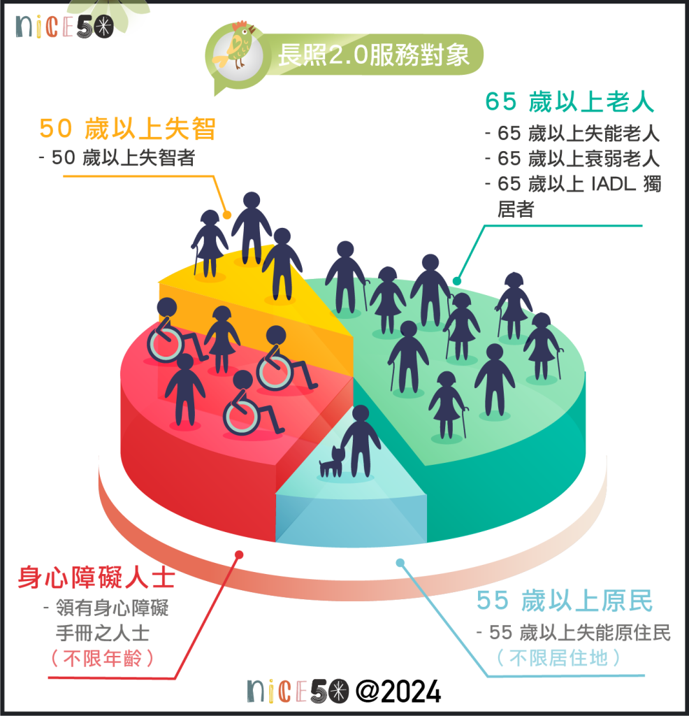 備註:只要上述對象符合符合長照需要等級 2 級以上,以及領有身心障礙證明或手冊者,都可以申請日間照護中心的服務唷!